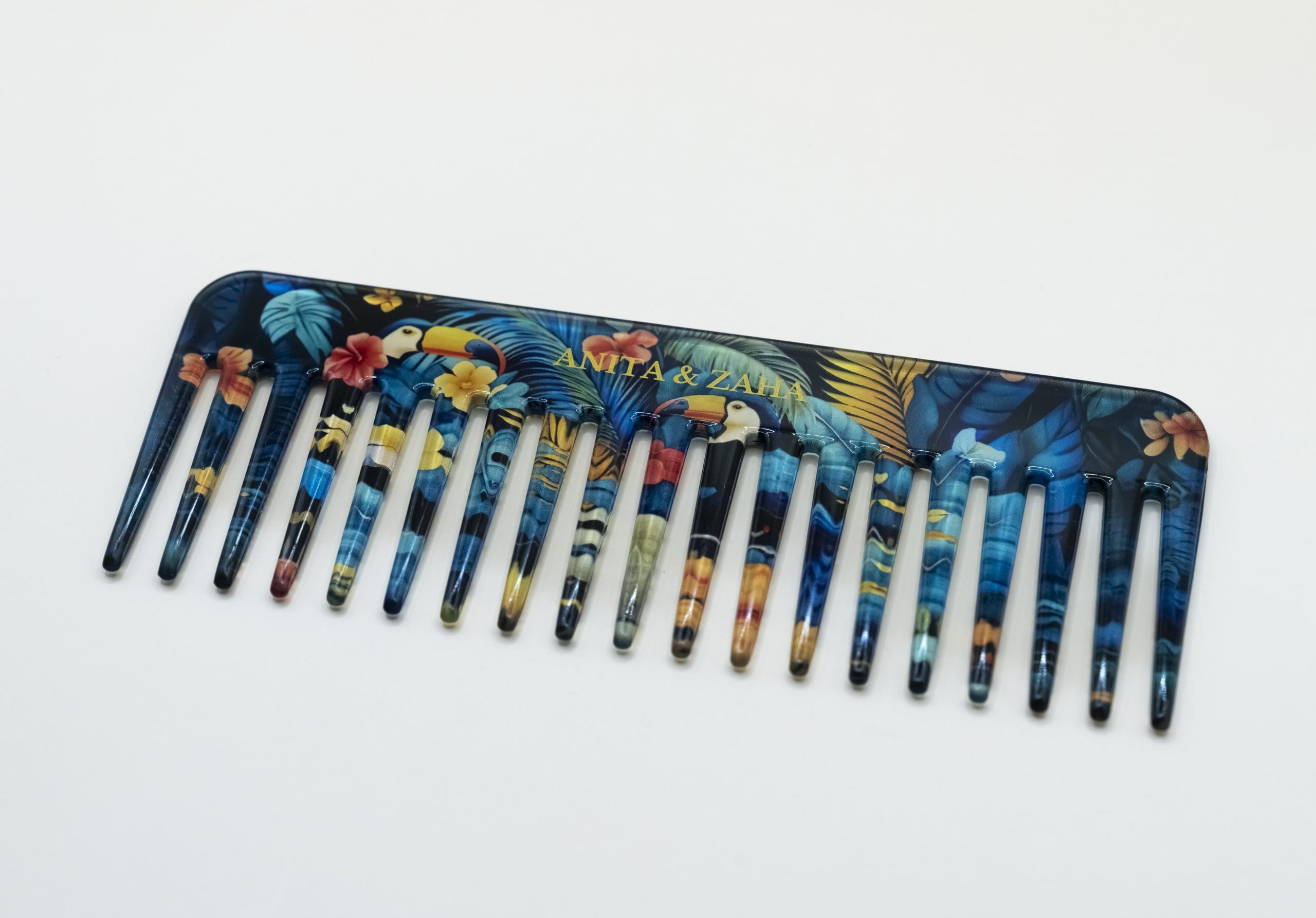 Peigne grand format au design inspiré du Toucan, coloré et élégant, pour un style unique et fun tout en restant pratique.